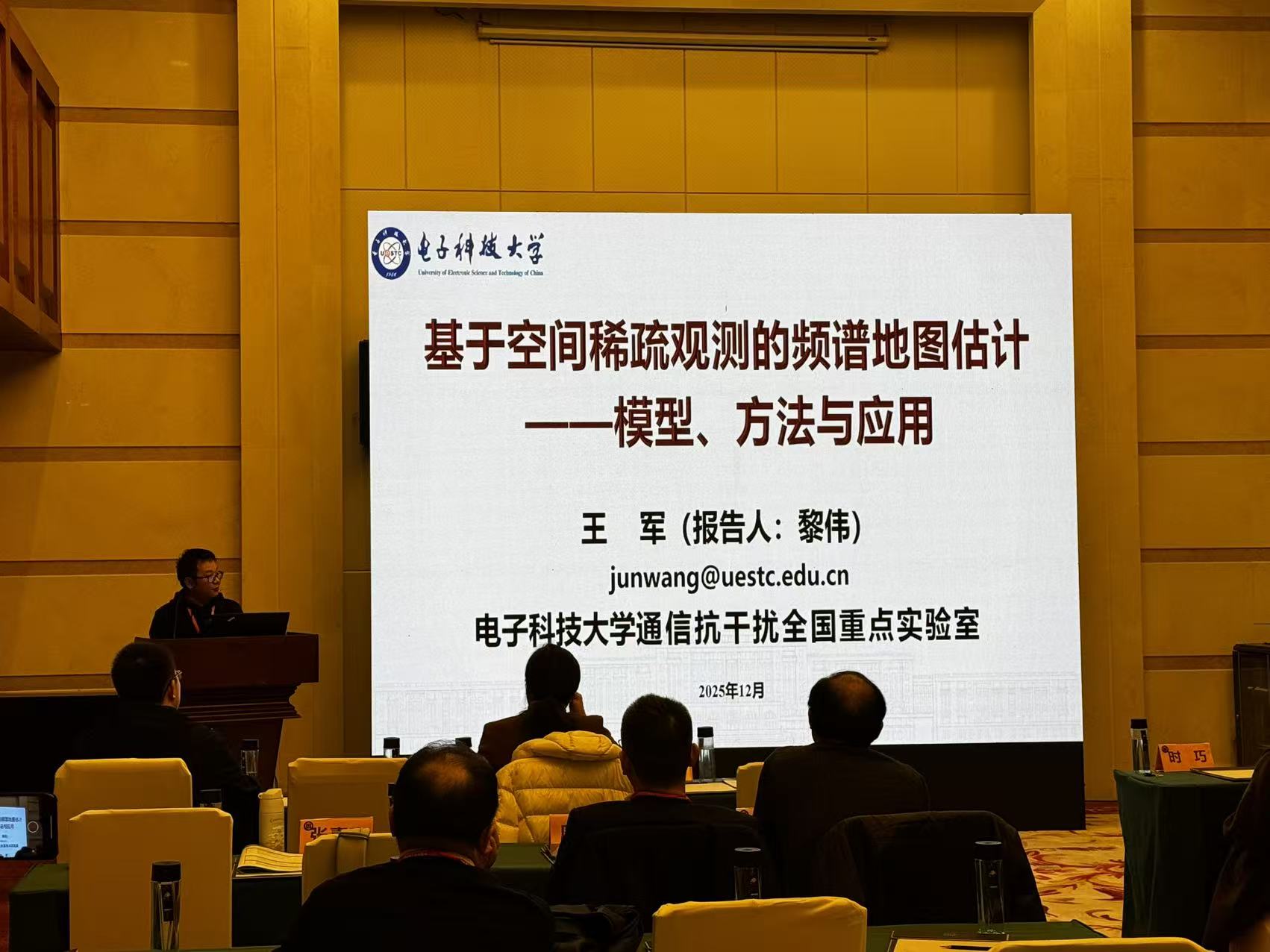 感谢黎伟博士代表项目组参加“2025年中国电磁兼容及电磁环境效应技术产业创新大会”,参加学术专题研讨:“电磁频谱与电磁环境感知及利用”,做报告:“基于空间稀疏观测的频谱地图估计——模型、方法与应用”。