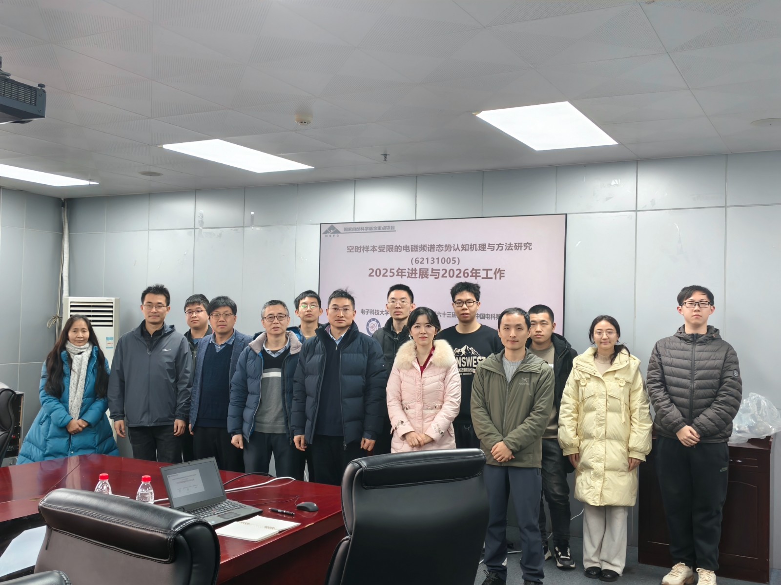 2026年1月16日上午,国家自然科学基金重点项目“空时样本受限的电磁频谱态势认知机理与方法研究(62131005)”以线下、线上结合的方式召开了2025年度研究工作总结、学术交流和2026年度研究规划研讨会议。项目牵头单位电子科技大学介绍了项目总体研究进展,参与单位中国电科十所和国防科技大学分别介绍了承担内容的研究进展。针对三个科学问题,项目从机理、技术和验证三个层次开展表征建模、态势生成、信息挖掘、资源管理、实验验证五项研究内容的研究工作,取得了积极进展。截止2025年底,项目已经发表学术论文87篇,申请和授权发明专利42项,毕业研究生47人,开展各类学术交流55次,获省部级科技奖励4项。在学术交流环节,来自国防科技大学的秦新蕊,中国电科的魏迪,电子科技大学的陈宵南博士,赵熙乐教授和李小平副教授分别分享了“电磁频谱知识图谱建模和用频行为推理”、“航天测控分布式感知决策技术”、“信号处理和机器学习系统中混合信息辨识”、“张量表征与计算”、“面向复数和向量的鲁棒中国余数定理”五个精彩的学术报告,涉及了理论方法和关键技术,为项目下一步研究提供了思路。在2026项目规划环节,项目组针对验证和结题讨论了2026年度的工作规划。